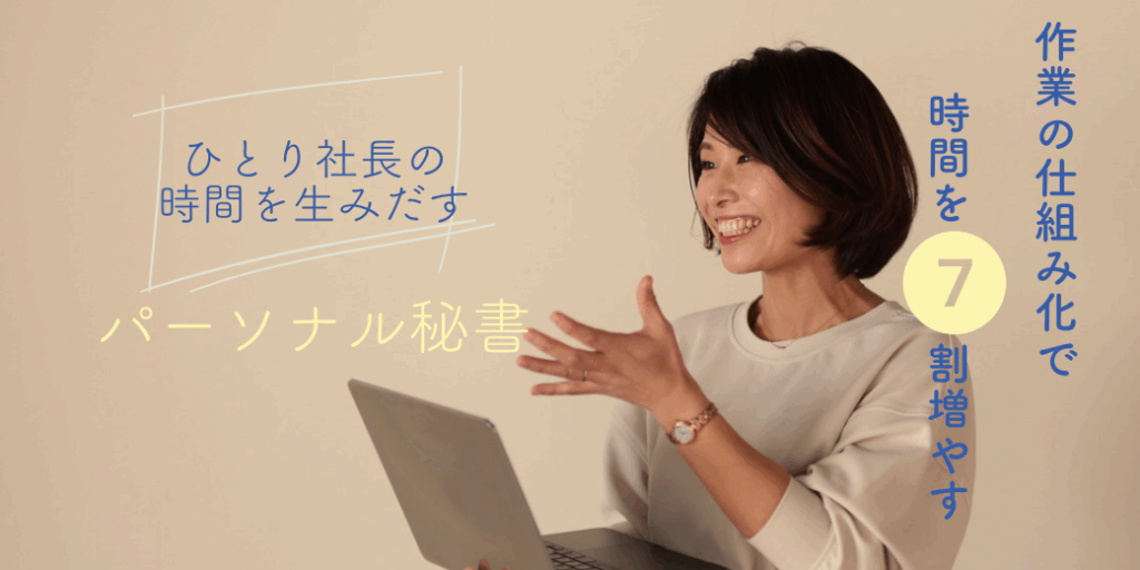 私が行っている、「作業の仕組化で時間を7割増やす パーソナル秘書」は下記よりご覧ください。